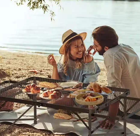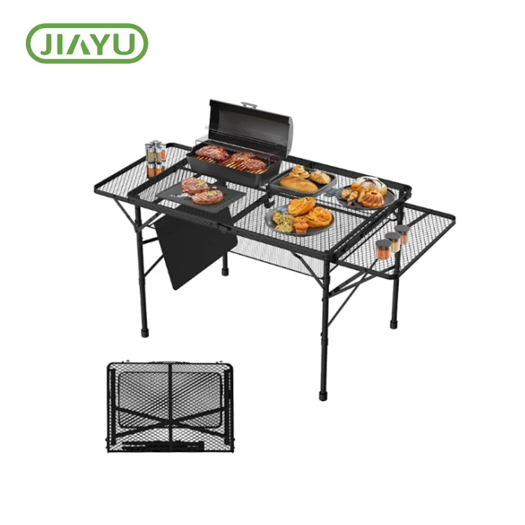 Tavolo da campeggio in lega da banco pieghevole per esterni. Con uno strato di mesh staccabile e una tasca laterale, il tavolo pieghevole di wildfinder contiene tutti gli elementi essenziali delle attività esterne. I titolari di tazza integrati non assicurano sversamenti, che offrono un'esperienza esterna senza stress. Zhejiang Jiayu Outdoor Products Co., Ltd., la struttura esagonale delle gambe del tavolo pieghevole, fissata con connessioni filettate, garantisce una stabilità e una forza senza pari, rendendola ideale per varie attività all'aperto.