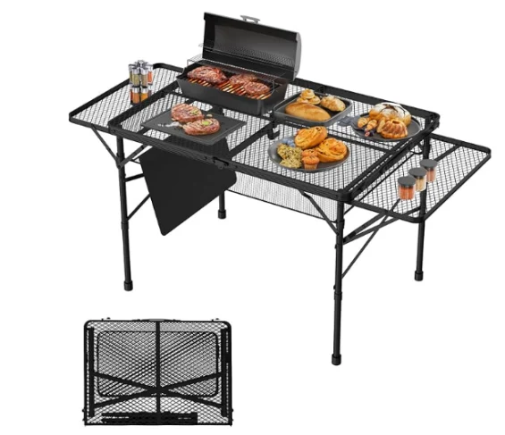 Tavolo da campeggio in lega scrivania pieghevole per esterni, tavolo pieghevole con 2 pannelli ad ala, tavolo da campeggio 3x2 con desktop in mesh, tavolo alla griglia pieghevole regolabile ad altezza con borsa a rete, tavolo da esterno portatile per picnic, campeggio, barbecue, barbecue