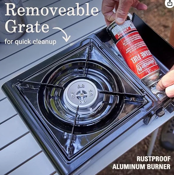 Mini forno da campeggio per esterni portatili. Grata con rivestimento in coppa è rimovibile per una rapida pulizia; Burner in alluminio a prova di ruggine.zhejiang Jiayu Outdoor Products Co., Ltd. Instastart Accenition per illuminazione automatica e senza partite; 7.650 BTU totali di potenza di cottura