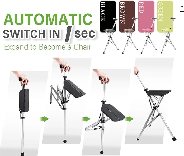 Old Men Alpenstock Trekking Cane, riposo e un bastone da escursionismo per il supporto. Questo design, che converte istantaneamente un bastone da escursioni su una sedia con uno scatto, offre riposo per gambe e ginocchia stanche in un momento.