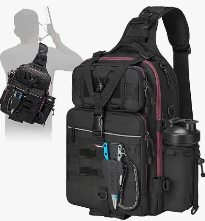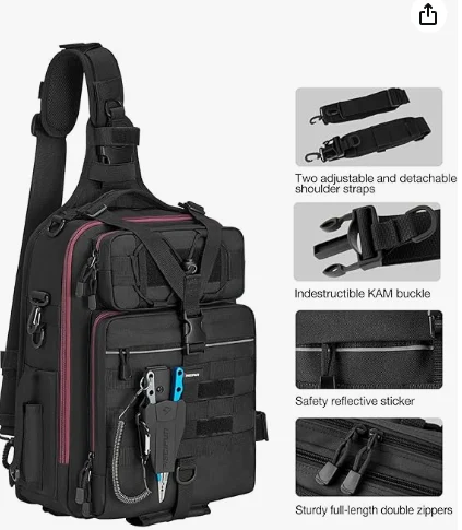 Le spalle staccabili rendono facile usare questa borsa come borsa a tracolla, zaino, borsetta, borsa per il torace, sacchetto per la pesca o borsa da viaggio. Con due cinture di canna per contenere le aste, la lunghezza del cinturino principale può essere estesa fino a 51.2 '', mentre il cinturino associato può essere esteso a 36.2 ''
