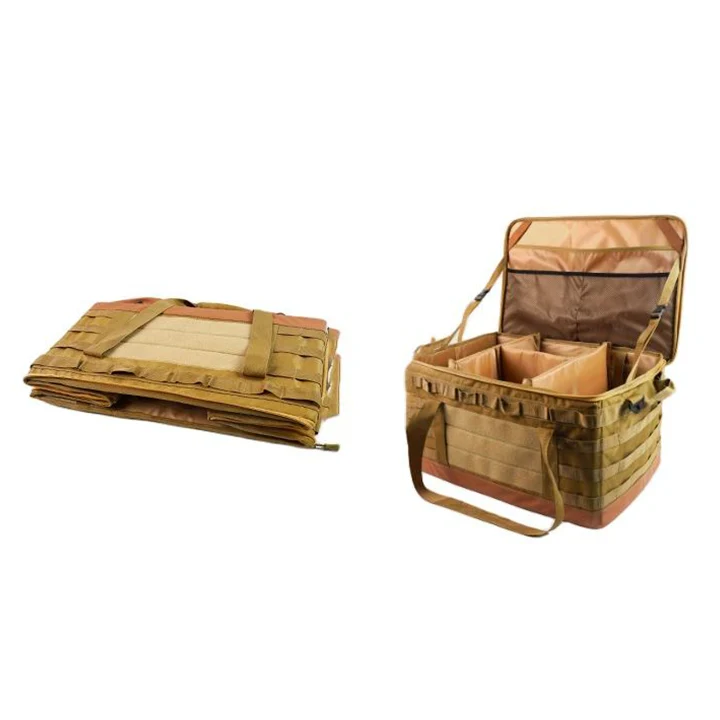 Picnic stoviglie per le tavoli. Organizzatore di utensili da cucina adotta il doppio design con cerniera, che è comodo da usare, facile da aprire e chiudere e può conservare bene il contenuto. Zhejiang Jiayu Outdoor Products Co., Ltd. Camping Cookware Storage Borse è realizzato in un robusto tessuto Oxford, che è impermeabile e robusto. Il cotone perla a strato interno ha un certo assorbimento d'urto e una funzione di isolamento freddo e può anche essere usato per mettere birra al ghiaccio e bevande di ghiaccio