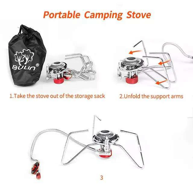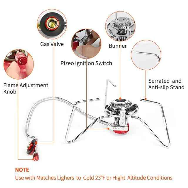Stufa a gas da campeggio inossidabile portatile, più comodo per regolare le dimensioni della fiamma. Inoltre, il fondo delle braccia di supporto con cuscinetti non slittati in silicone per evitare che la stufa da campeggio scivoli.