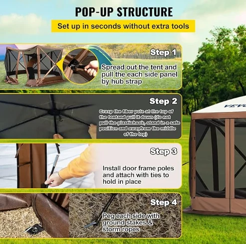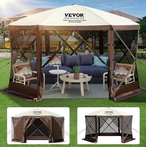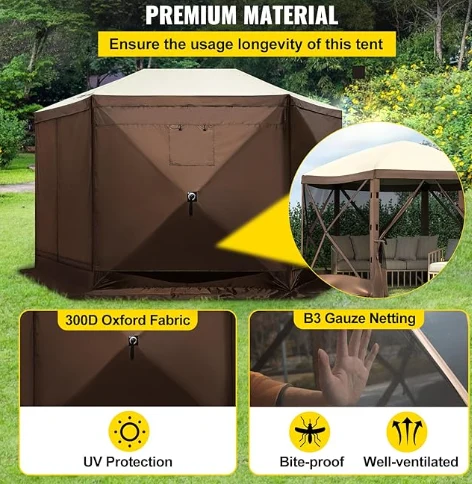 Tenda da baldacchino da campeggio pergolato a prova di pioggia, tenda da gazebo da campeggio è realizzata in tessuto Oxford 300D e reti di garza B3. È IPX3 impermeabile, a prova di morso e resistente ai raggi UV. Il baldacchino gazebo da 12 'x 12' offre un ampio spazio per l'uso del rifugio per esterni.