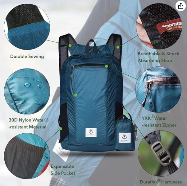 Zaino per escursioni leggero impermeabili, questo diurno escursionistico leggero è realizzato in materiale e cerniera resistente all'acqua. Impedire effettivamente l'acqua piovana di bagnare il telefono o contanti e altri oggetti nello zaino.